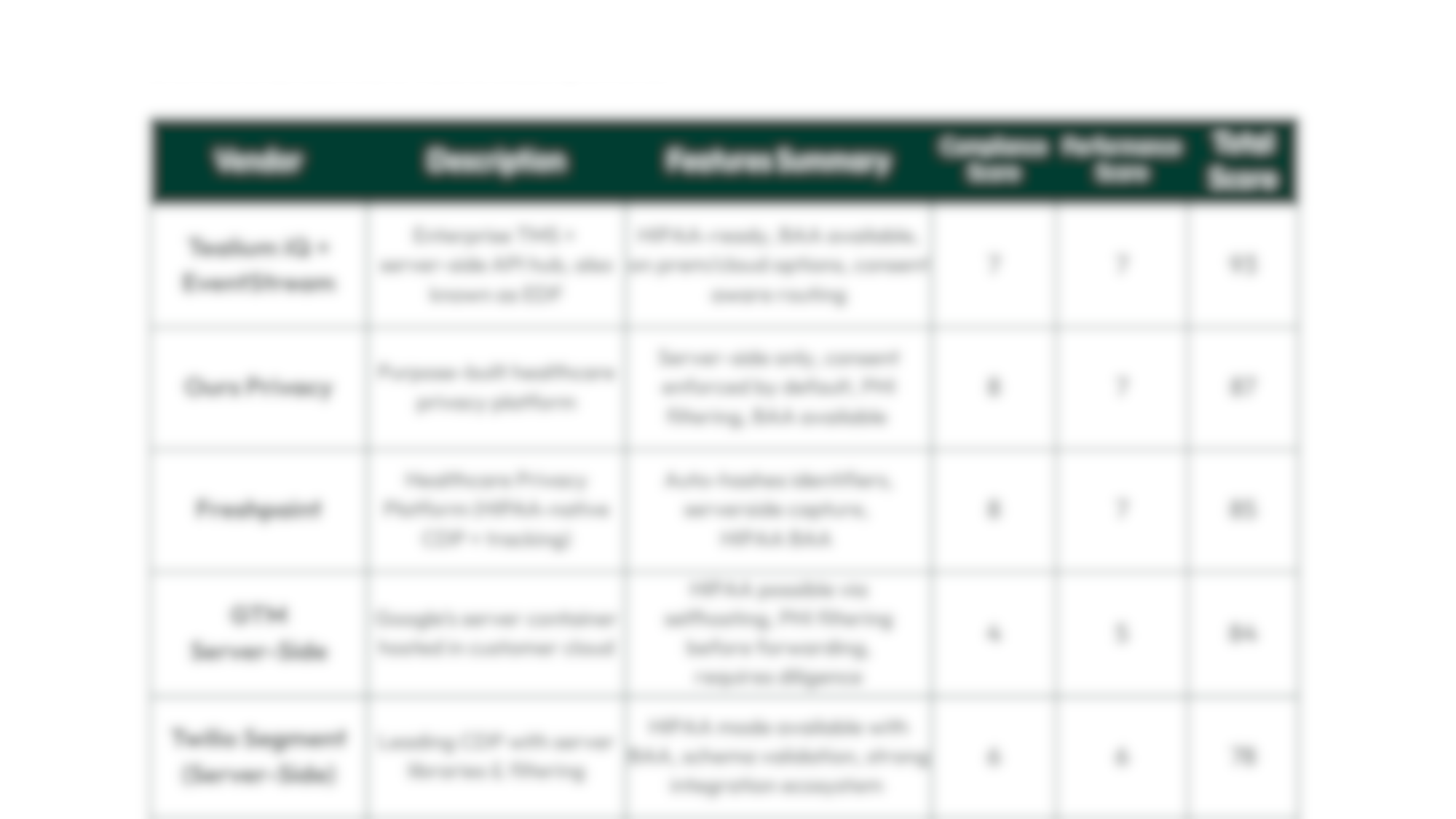 These vendors are purpose-built for HIPAA and privacy-first industries. They operate with consent enforcement and PHI filtering as defaults, not add-ons.